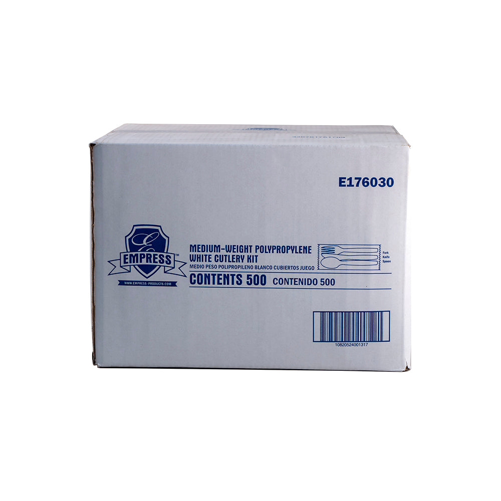 Medium Weight White Kit Polypro Fork Knife Teaspoon Wrapped